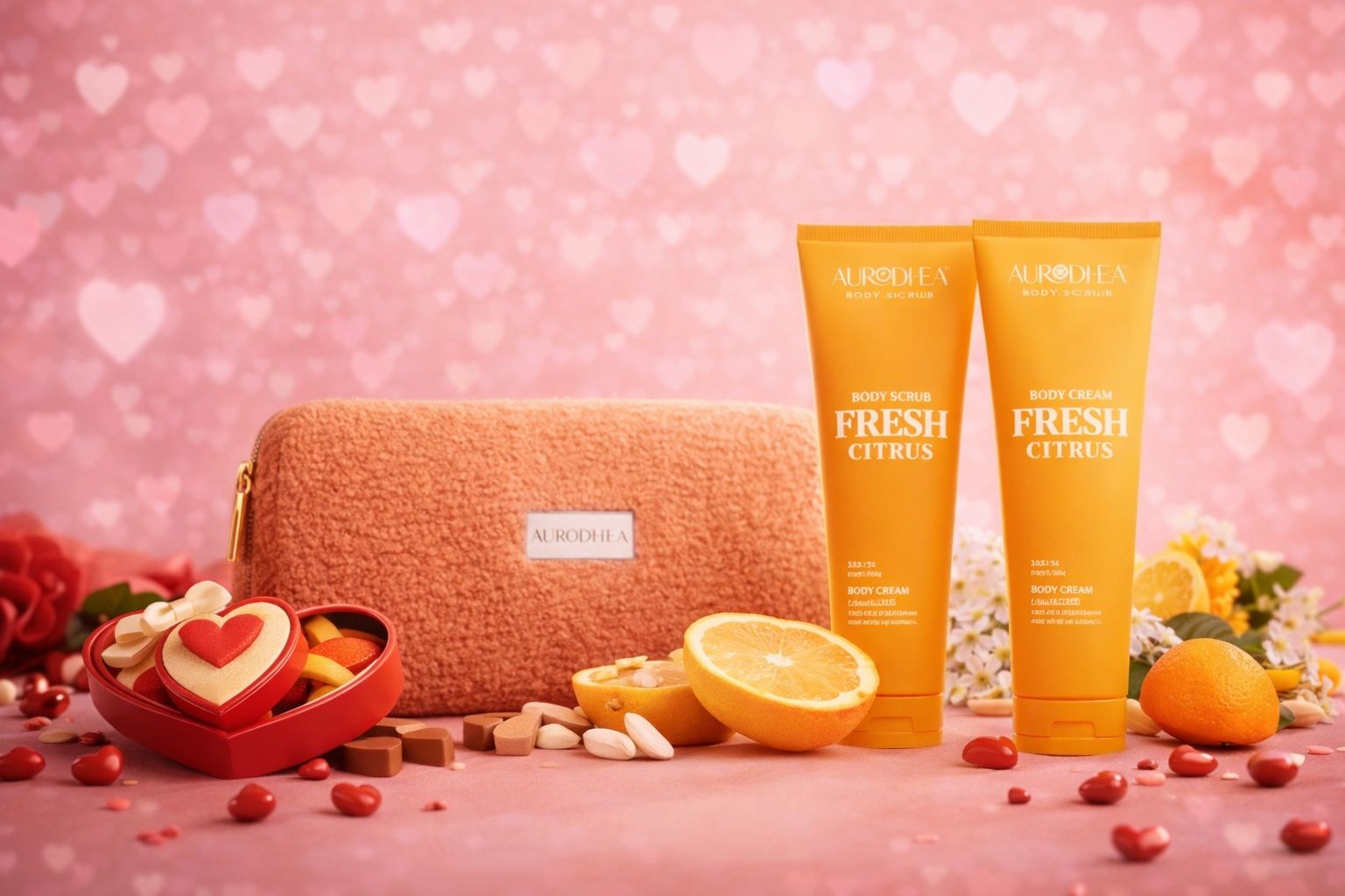 Chaque coffret contient une crème pour le corps et un gommage enrichis du complexe HYDRACORE™, le tout dans une adorable pochette style teddy.